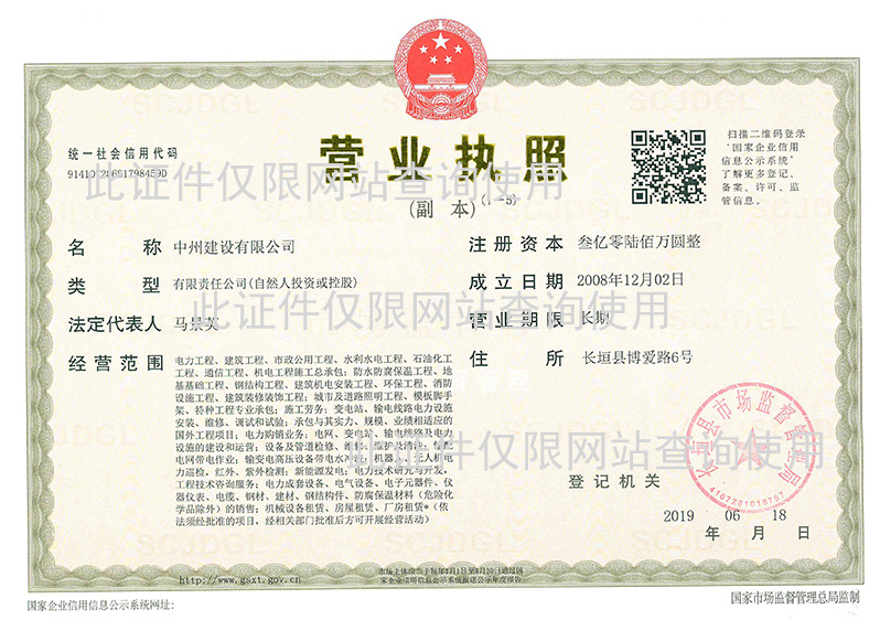 Copyright 2019 中州建設有限公司 版權所有 豫ICP備19003361號-2 豫公網安備41072802000605 營業(yè)執(zhí)照信息公示